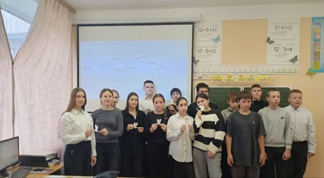Вот уже несколько лет во многих странах отмечают Праздник белых журавлей — праздник поэзии и памяти, павших на полях сражений во всех войнах. 21 октября библиотекарем Власенко Г.Ю  для учащихся 8-11 классов была проведена  патриотическая акция «День белых журавлей» Библиотекарь познакомила ребят с историей праздника, рассказала о народном поэте Дагестана Расуле Гамзатове, о том, как появилось стихотворение и песня «Журавли». Глубокое сочувствие присутствующих вызвала трагическая история японской девочки Садако Сасаки. Рассказ сопровождался видео – презентацией, благодаря которой присутствующие смогли узнать и посмотреть, что в разных уголках России и других странах воздвигнута целая галерея памятников, где журавли используются для передачи скорби по воинам, не вернувшихся с войны.  Учащиеся почтили минутой молчания память павших в боях за Отечество. А потом ребята дружно вырезали из белой бумаги символ этого праздника — Белых Журавлей. В конце мероприятия  ребята выразили общее мнение  о том, что любые войны – это боль и горечь утраты, разлука, слезы  и разруха. Всему человечеству нужен мир!!!