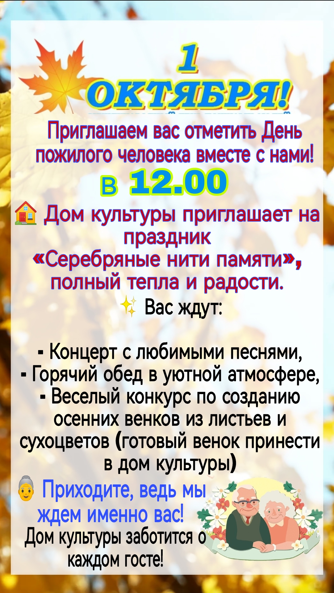 Приглашаем вас отметить День пожилого человека вместе с нами!